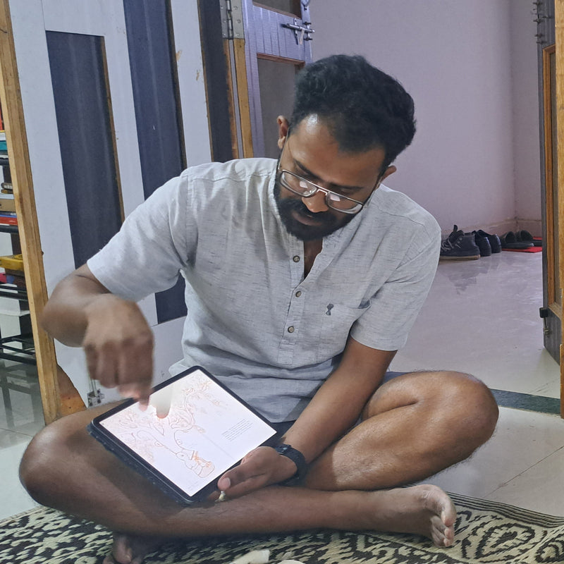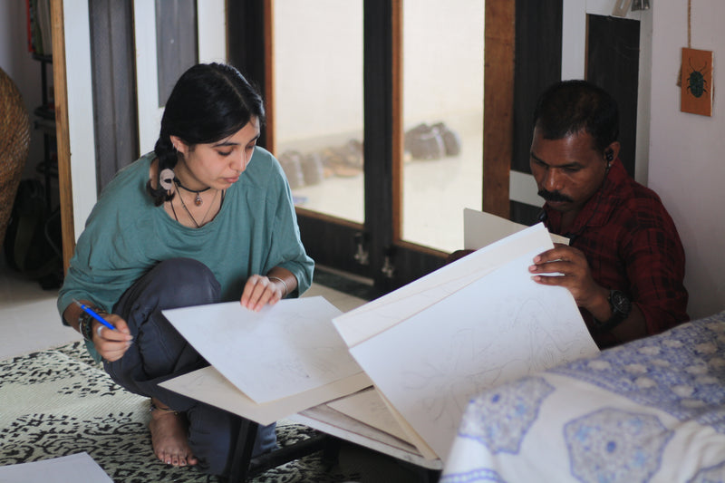 Crafted entirely in-house, we collaborate closely with artists from indigenous communities to meticulously visualize oral narratives, traditionally passed down by knowledge keepers of tribal Madhya Pradesh.